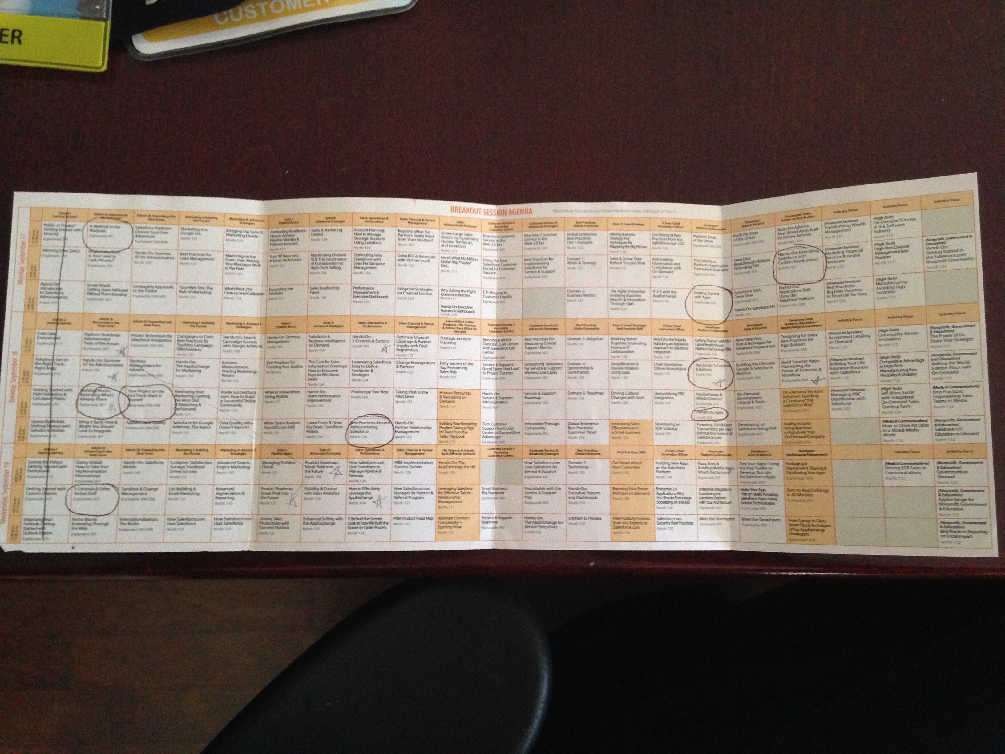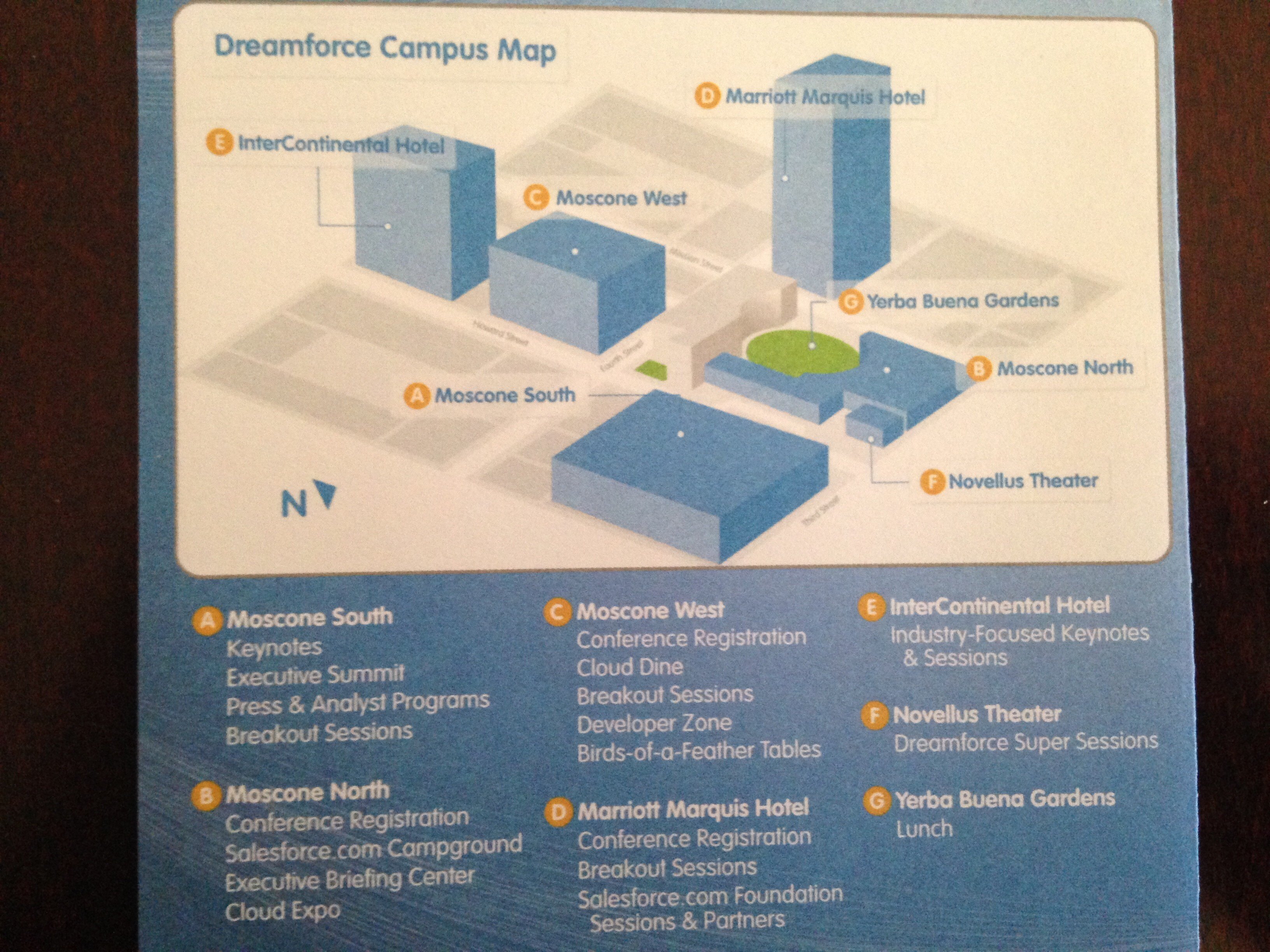 I've been lucky enough to have attended Dreamforce for the past 6 years. In 2007, my first Dreamforce, there were about 7000 attendees and over 150 exhibitors. INXS played an incredible show, Visualforce was introduced (and looked cool, but confused the hell out of me), and I got to see George Lucas talk about why education is important to him. This was my first large, professional conference, and was amazed by the layout of the whole thing. Back then, Moscone North & South were used for the big show. What's also really incredible to anyone who might be a more recent Dreamforce attendee is that the entire schedule of breakout sessions fit into the insert that was in the pock of the badge. There were not 1,250+ breakout session like you will see at Dreamforce 13.